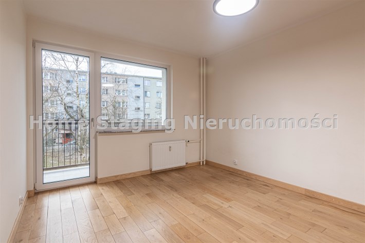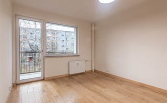 Mieszkanie zaaranżowane w nowoczesnym stylu - salon otwarty na przedpokój, połączony z aneksem kuchennym, duża sypialnia z balkonem i mały pokój. Łazienka połączona z wc. Lokal po remoncie generalnym.