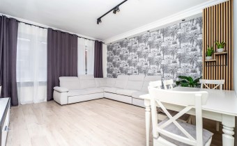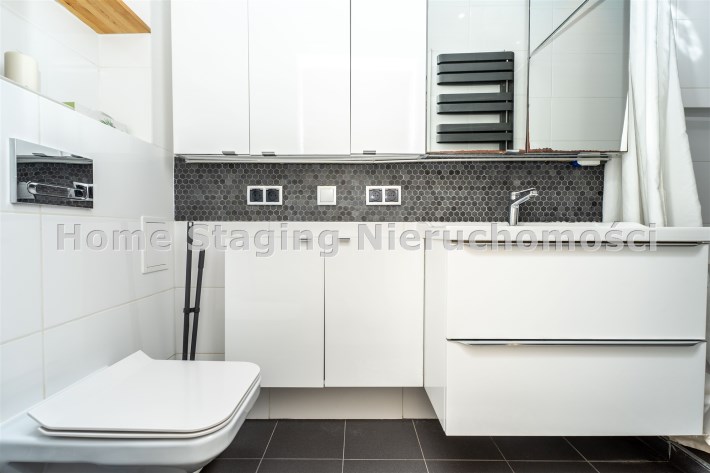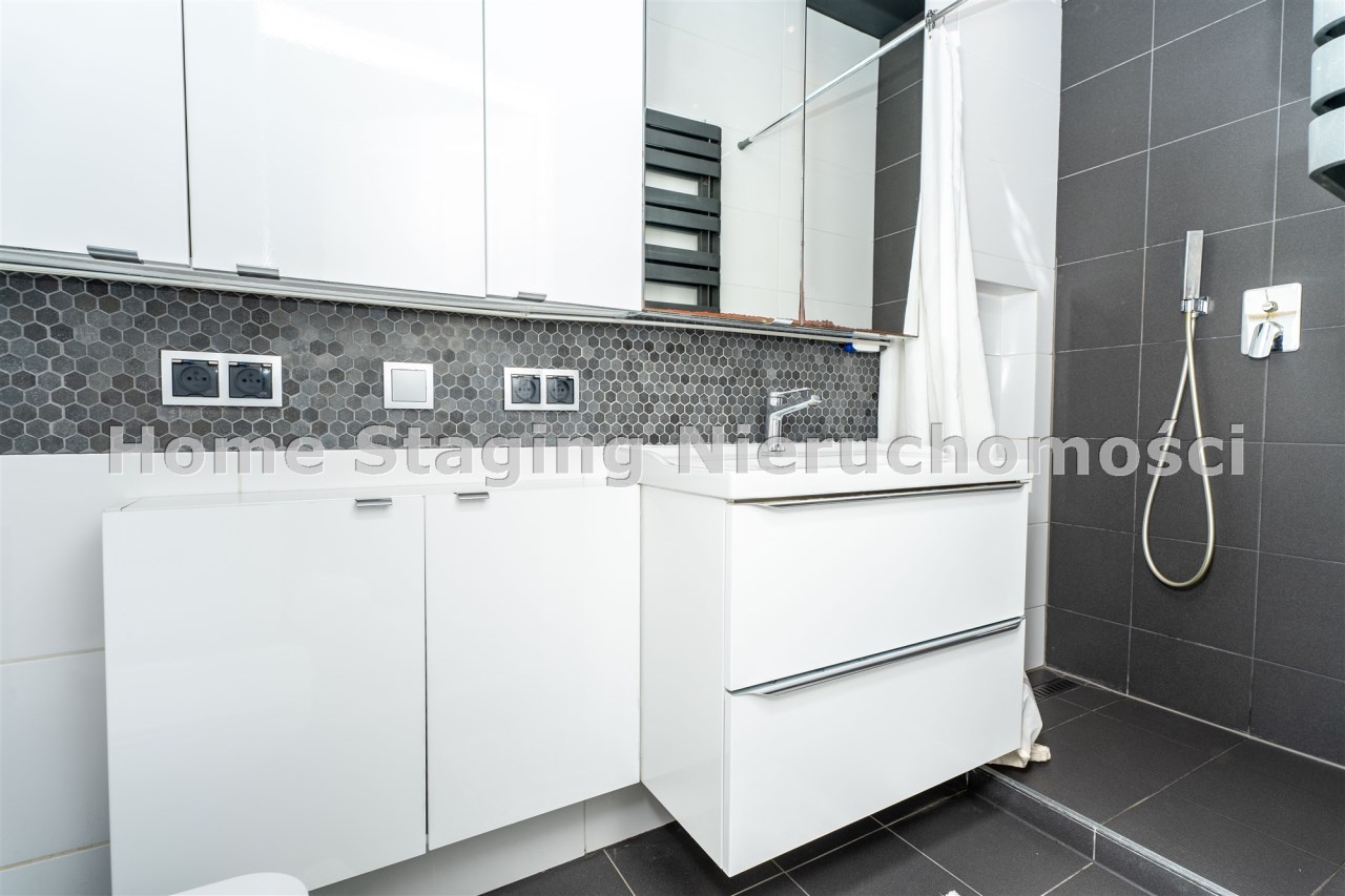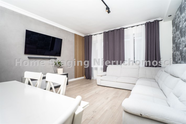 umeblowane. W salonie kanapa, telewizor, meble użytkowe. Zabudowana kuchnia wyposażona w komplet wysokiej klasy sprzętów AGD, pralkę oraz suszarkę. Sypialnia z dużym dwuosobowym łóżkiem oraz osobną garderobą. Łazienka z prysznicem. Nowoczesne oświetlenie. Mieszkanie jest