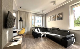 Na powierzchnię 53m2 składa się przestronny salon z aneksem kuchennym w pełni wyposażonym, sypialnię, łazienkę razem z WC oraz korytarz z duża szafą.