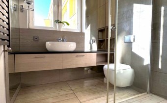 Wyposażenie łazienki WC, umywalka, szafki, prysznic, lustro