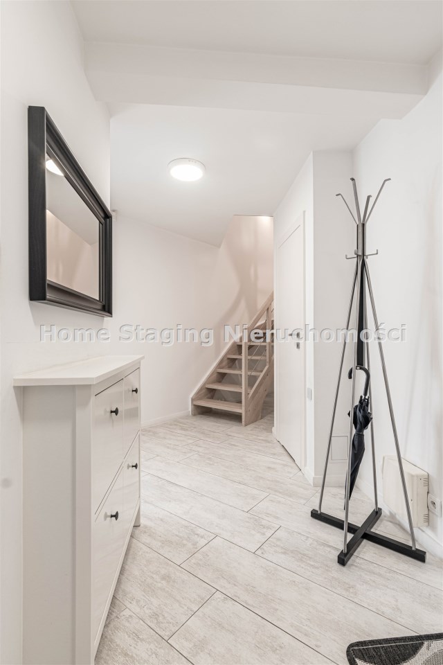 - przedpokój z klatką schodową prowadzącą na kolejny poziom mieszkania.