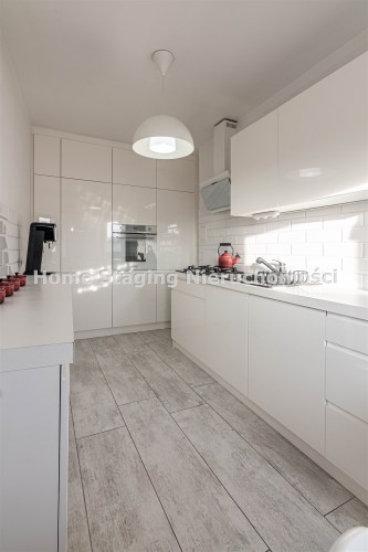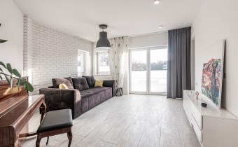 Mieszkanie w bardzo dobrym standardzie, na podłogach panele, okna PCV, na wyższych poziomach drewniane, połaciowe. Ściany gładzone, malowane. Schody prowadzące na kolejne poziomy z litego drewna. Stolarka drzwiowa wewnętrzna, bezprzylgowa z zamkami magnetycznymi.