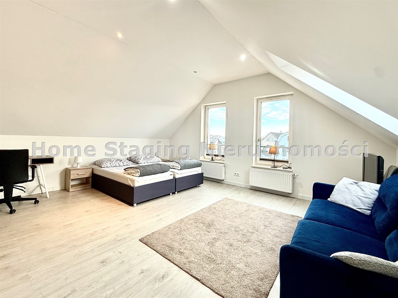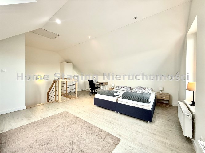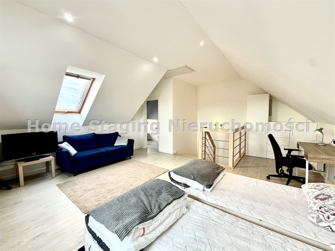 - dużej sypialni z miejscem na część biurową (na piętrze)