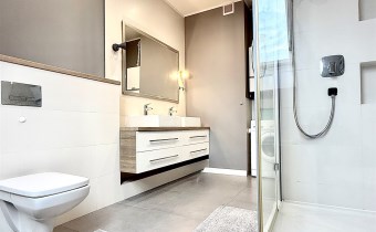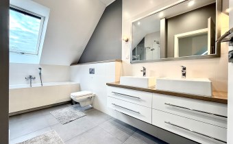 - łazienki z wanną, prysznicem i dwoma umywalkami (na piętrze)