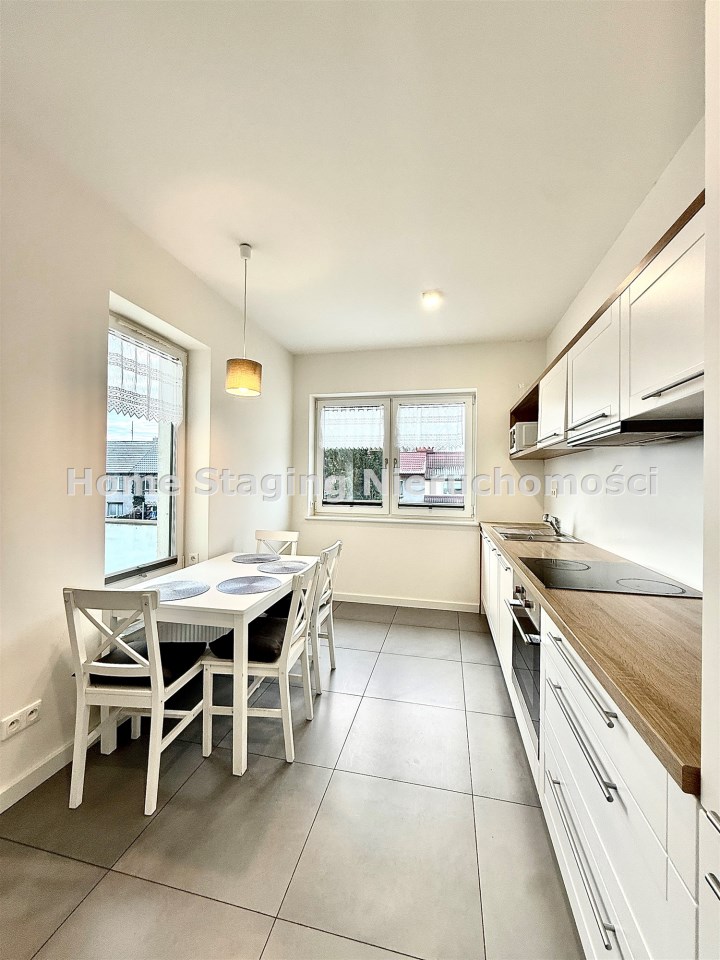 Kuchnia wyposażona w niezbędny sprzęt AGD oraz kącik jadalniany.