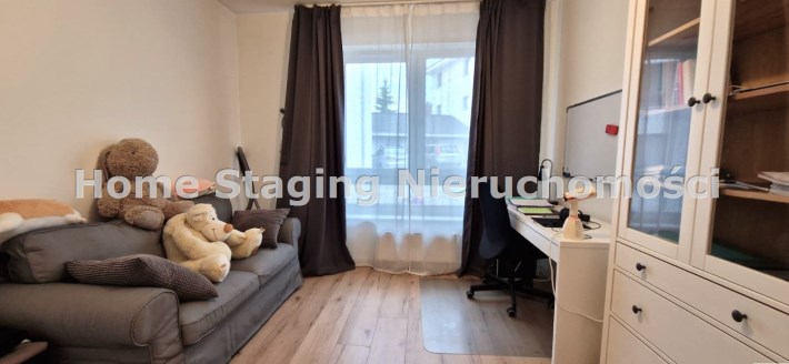 Na powierzchnie 92m2 znajdziemy 3 duże i ustawne pokoje, przestronny salon połączony z kuchnia, łazienkę razem z WC, osobno WC oraz korytarz. Powierzchnia ogródka to około 150 m2. Garaż bezpośrednio w bryle budynku. W całym mieszkaniu zamontowane zostały rolety antywłamaniowe.