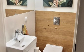 • przestronnej strefy dziennej - salonu z aneksem kuchennym oraz wyjściem na ogród
